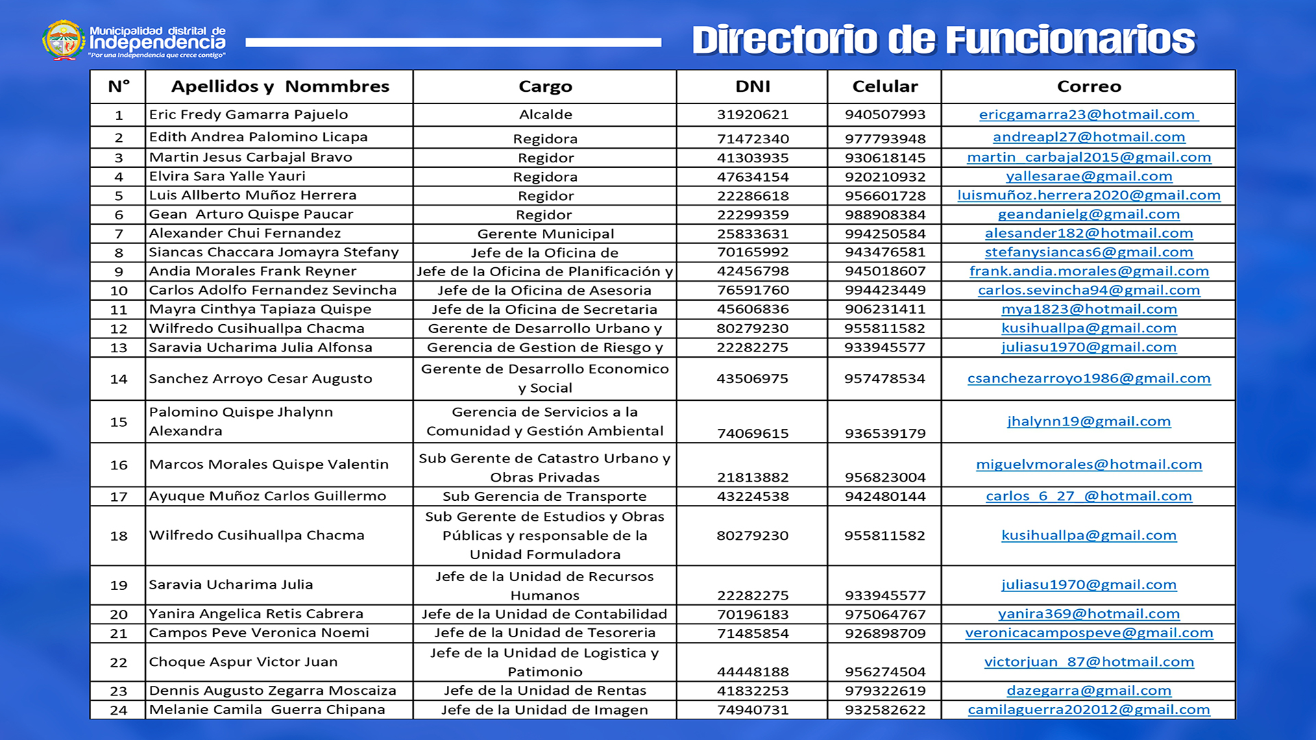 DIRECTORIO DE FUNCIONARIOS 2025