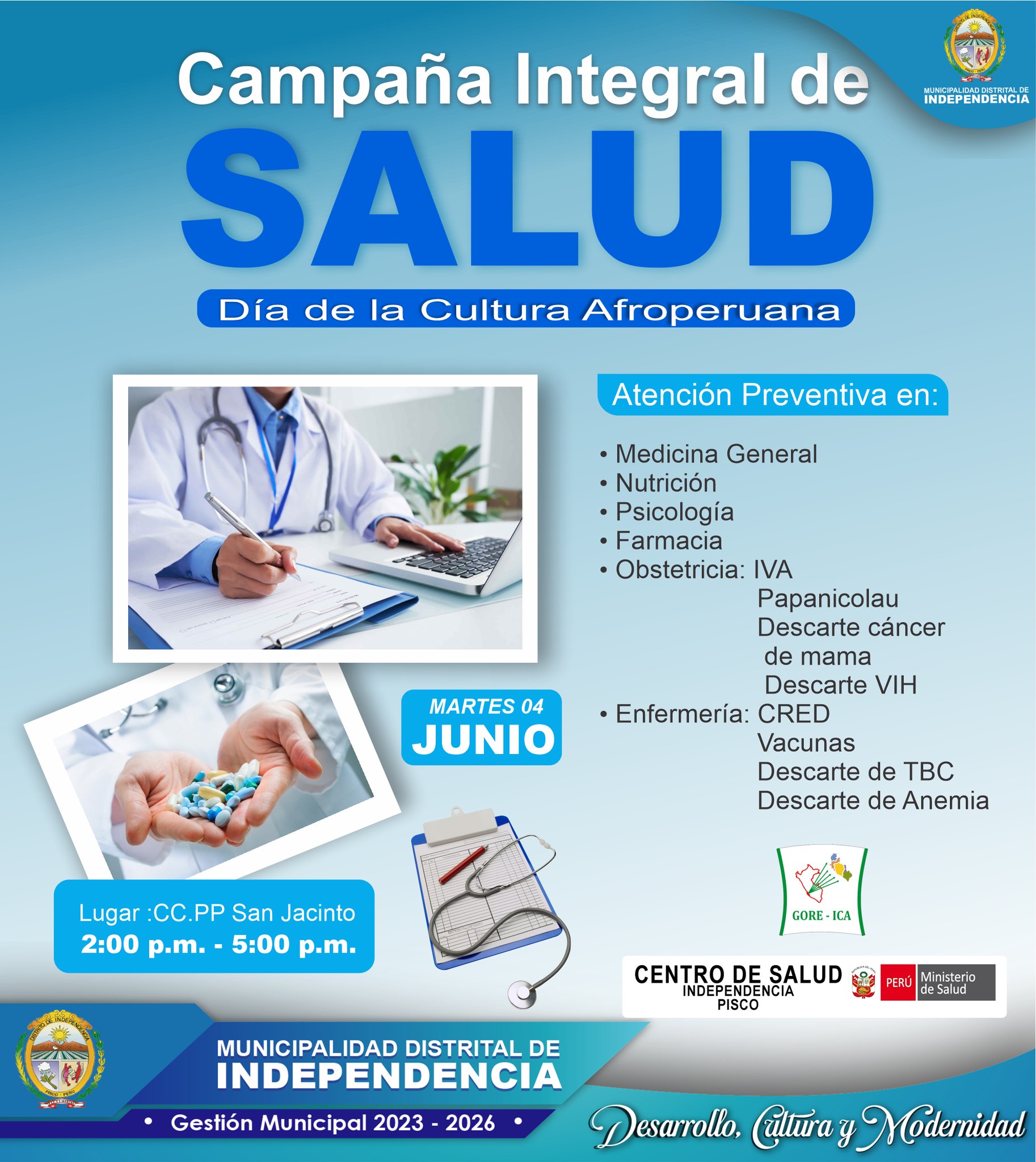 SE REALIZO CAMPAÑA DE SALUD INTEGRAL GRATUITA EN SAN JACINTO POR EL DIA DE LA CULTURA AFROPERUANA