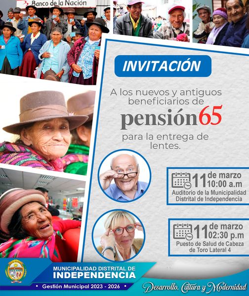 ENTREGA DE LENTES GRATUITOS A BENEFICIARIOS DEL PROGRAMA DE ASISTENCIA SOLIDARIA PENSIÓN 65