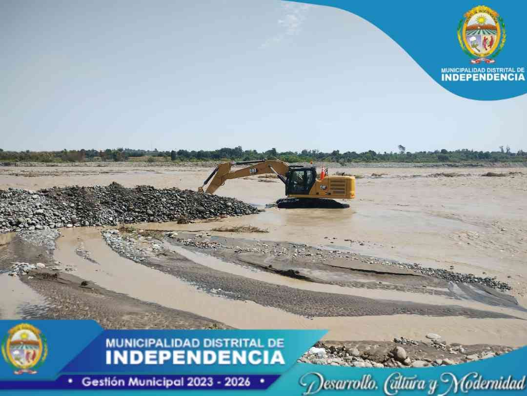 MAQUINARIAS DEL EJÉRCITO TRABAJAN EN EL DEFENSA RIBEREÑA EN EL RIO PISCO SECTOR DOS PALMAS