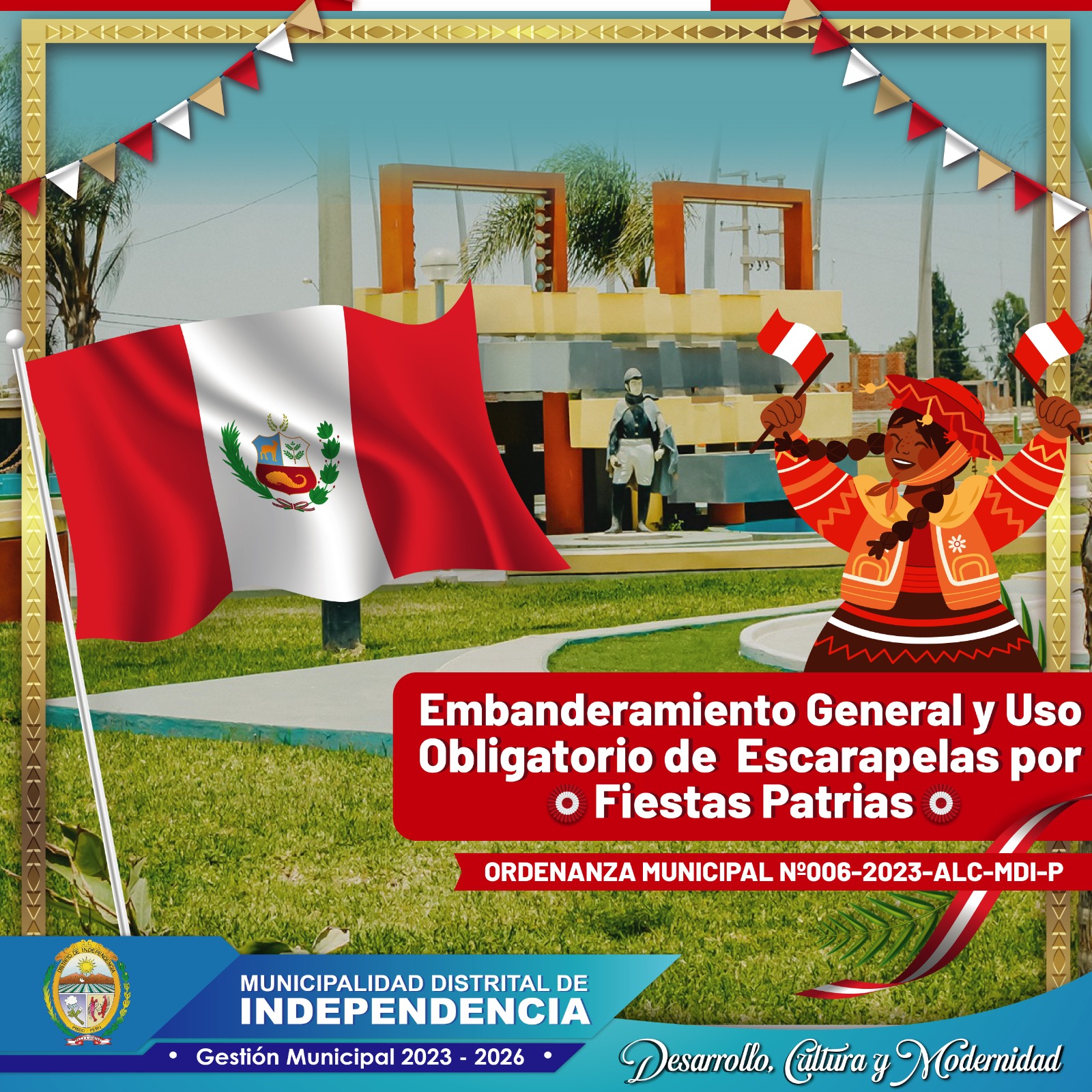 MUNICIPALIDAD DISPONE EMBANDERAMIENTO GENERAL Y USO DE ESCARAPELA POR FIESTAS PATRIAS
